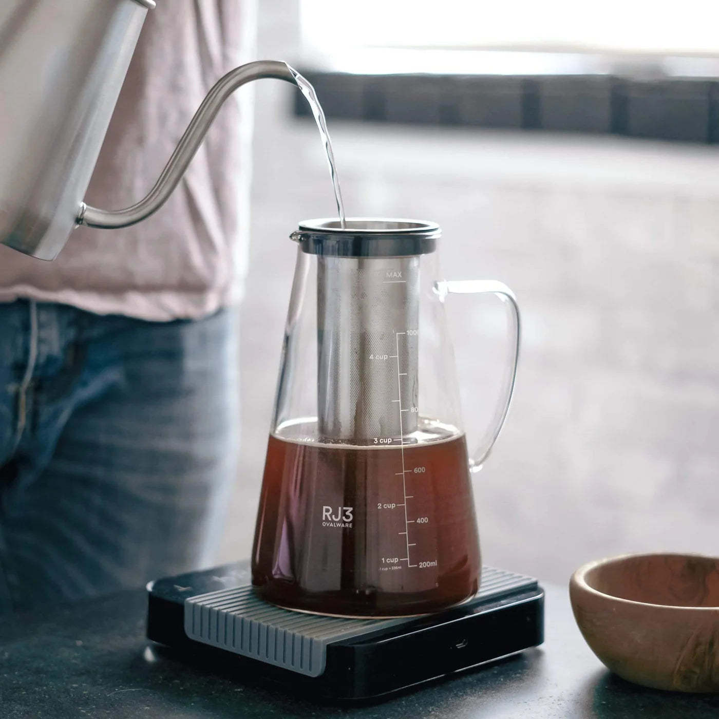 Grind: For the Ovalware RJ3 1.5L Cold Brew Maker, we suggest using 110g of coffee ground coarse.
